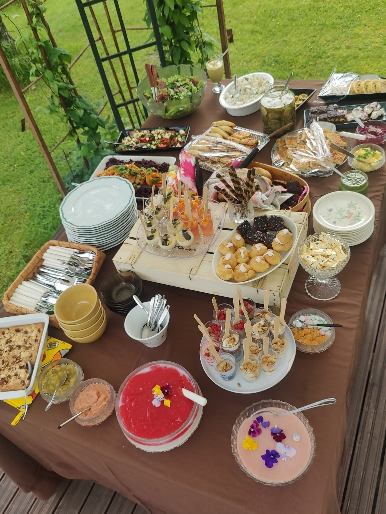 Voit käyttää kesäkeittiötä eväiden syöntiin tai tilaa meiltä etukäteen Reittiön runsas brunssiaamiainen 25€/hlö.